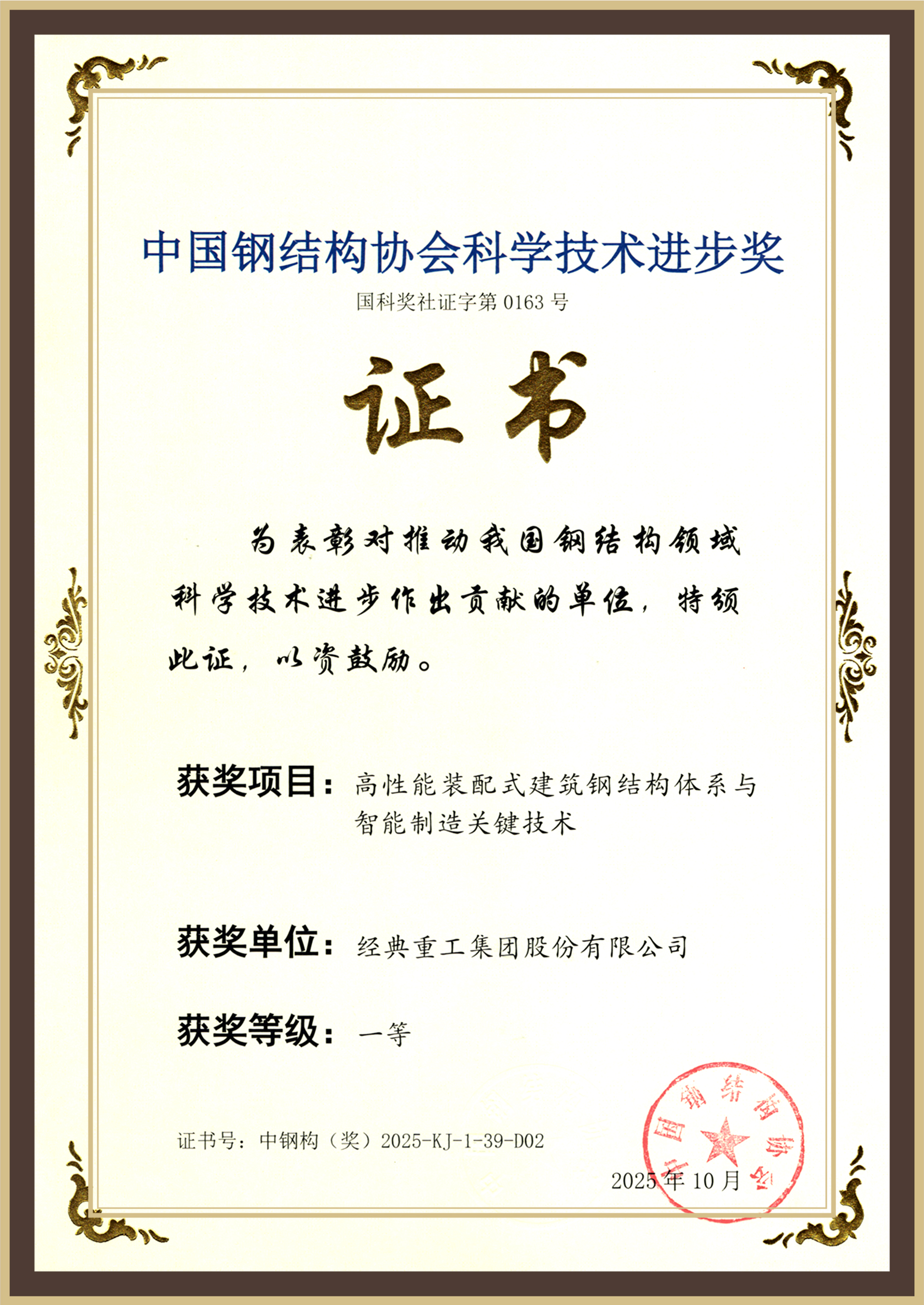 經(jīng)典集團(tuán)在中國鋼結(jié)構(gòu)協(xié)會(huì)成立四十周年紀(jì)念大會(huì)上榮膺“卓越貢獻(xiàn)獎(jiǎng)”,彰顯卓越貢獻(xiàn)與影響力。
