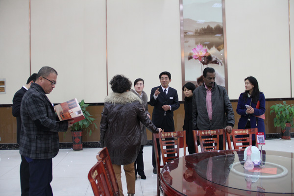 印度貿(mào)易考察團(tuán)參觀了經(jīng)典集團(tuán)的營銷中心、行政辦公室、愛心超市、商務(wù)餐廳和千人員工餐廳,聽取了經(jīng)典集團(tuán)發(fā)展介紹,進(jìn)一步了解了經(jīng)典集團(tuán)的生產(chǎn)經(jīng)營、文化建設(shè)、紅木家俱、合作交流等有關(guān)情況。印度貿(mào)易考察團(tuán)對經(jīng)典集團(tuán)的快速發(fā)展和多元化發(fā)展給予高度評價。