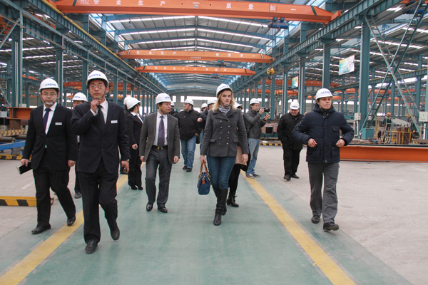 俄羅斯考察團(tuán)首先參觀了經(jīng)典集團(tuán)11萬(wàn)平方米的輕鋼重鋼生產(chǎn)車(chē)間,就鋼結(jié)構(gòu)生產(chǎn)工藝、生產(chǎn)流程、技術(shù)設(shè)備、車(chē)間管理等方面與經(jīng)典集團(tuán)高層進(jìn)行了交流。隨后考察團(tuán)參觀了經(jīng)典集團(tuán)文化館、工程中心、設(shè)計(jì)院和技術(shù)部,進(jìn)一步了解了經(jīng)典集團(tuán)企業(yè)文化、產(chǎn)學(xué)研合作、工程設(shè)計(jì)、技術(shù)分解和技術(shù)創(chuàng)新等有關(guān)情況。