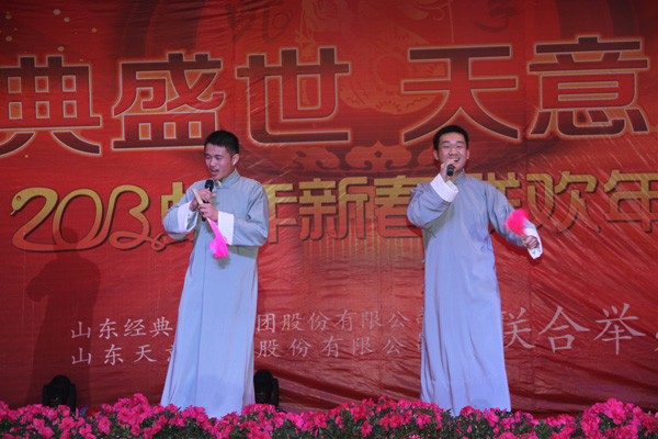 為了迎接2013年新春佳節(jié),給公司全體員工及家人們營造歡樂愉快的節(jié)日氣氛,2月6日,由經(jīng)典集團(tuán)公司主辦的主題為2013“經(jīng)典盛世 天意騰飛”新春年會,于集團(tuán)公司宴會廳熱烈舉行。公司各級領(lǐng)導(dǎo)、全體員工及員工家屬近千人共同參加了本次年會。