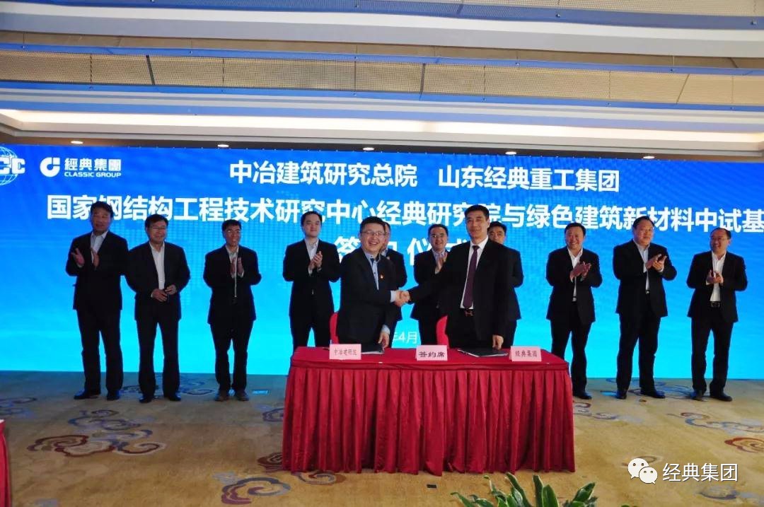 4月14日,山東經(jīng)典重工集團(tuán)股份有限公司與中冶建筑研究總院有限公司在北京簽署合作協(xié)議,成立山東中冶經(jīng)典建筑科技有限公司,總投資15億元,在濟(jì)寧(兗州)建設(shè)國家鋼結(jié)構(gòu)工程技術(shù)研究中心經(jīng)典研究院與綠色建筑新材料中試基地,推進(jìn)綠色建筑新材料體系產(chǎn)、學(xué)、研轉(zhuǎn)化,打造鋼結(jié)構(gòu)生產(chǎn)制造、研發(fā)設(shè)計、建筑施工、產(chǎn)品檢測于一體的魯西南鋼結(jié)構(gòu)產(chǎn)業(yè)發(fā)展中心。