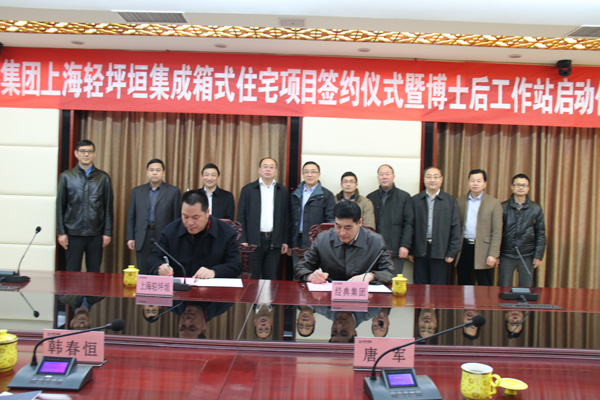 儀式上,經(jīng)典集團與輕坪垣輕鋼房屋技術(shù)有限公司簽署了經(jīng)典集成箱式住宅項目合作協(xié)議,與同濟大學博士后姚行友簽訂了工作協(xié)議,標志著經(jīng)典集成箱式住宅產(chǎn)學研合作項目和博士后工作站正式啟動。