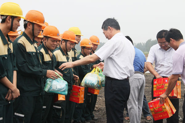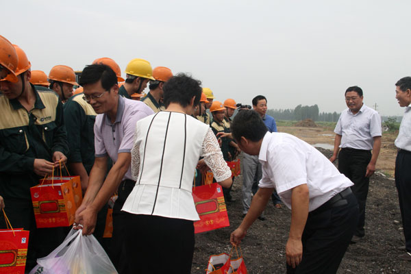杜福生總經(jīng)理代表集團(tuán)職工對區(qū)領(lǐng)導(dǎo)的慰問表示誠摯感謝。面對持續(xù)的高溫天氣,集團(tuán)公司堅持以職工為本,制定了防暑降溫工作方案,在生產(chǎn)任務(wù)較重的情況下,合理安排了工作休息時間,為一線員工準(zhǔn)備了西瓜、冰鎮(zhèn)飲料等降暑食品以及藿香正氣水等物品,將公司宴會廳空調(diào)打開,為生產(chǎn)員工提供了休息場所,保障了一線職工的身體健康和企業(yè)的正常生產(chǎn)運營。廣大職工紛紛表示,將牢記領(lǐng)導(dǎo)的關(guān)懷和叮囑,以飽滿的工作熱情投入的生產(chǎn)、建設(shè)中去,用努力工作回報各級領(lǐng)導(dǎo)的關(guān)心和厚愛。