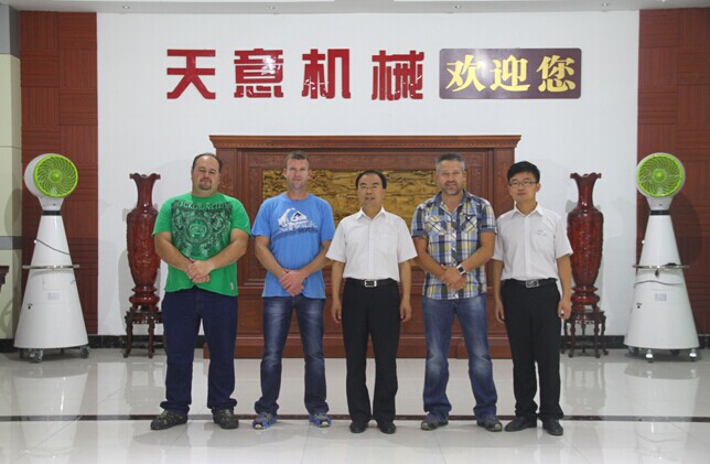 2014年6月18日,南非客戶蒞臨天意機械考察新型建材設(shè)備,公司外貿(mào)部成員親切接待。