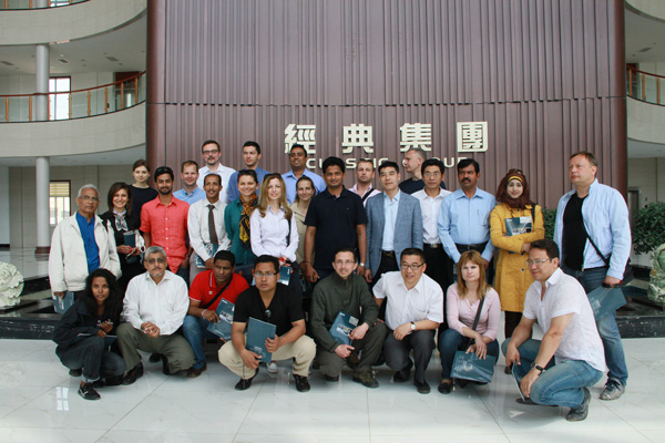 亞歐二十六國政府官員及行業(yè)協(xié)會(huì)領(lǐng)導(dǎo),不顧勞途奔波,下車后就興致勃勃的參觀了經(jīng)典集團(tuán)辦公樓,為其古典與現(xiàn)代結(jié)合的優(yōu)美辦公環(huán)境所嘆服,隨后苗董帶領(lǐng)客人一行,參觀了職工活動(dòng)中心,生產(chǎn)車間,客人詳細(xì)了解了車間生產(chǎn)狀況及員工的福利待遇情況,最后在會(huì)議中心,集團(tuán)國際事業(yè)部負(fù)責(zé)人與考察團(tuán)一行進(jìn)行了座談,客人一行詳細(xì)了解了公司的概況以及海外市場(chǎng)業(yè)務(wù)進(jìn)展?fàn)顩r,集團(tuán)國際事業(yè)部負(fù)責(zé)人一一解答,座談后與斯里蘭卡貿(mào)易和投資促進(jìn)會(huì)秘書長哈尼爾先生(Nihal Aluvihare)及尼泊爾、匈牙利、保加利亞等國簽署了對(duì)外貿(mào)易合作協(xié)議。