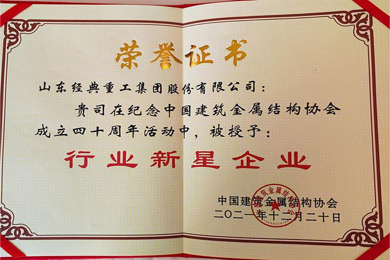 公司榮獲中國建筑金屬結構協(xié)會行業(yè)新星企業(yè)稱號